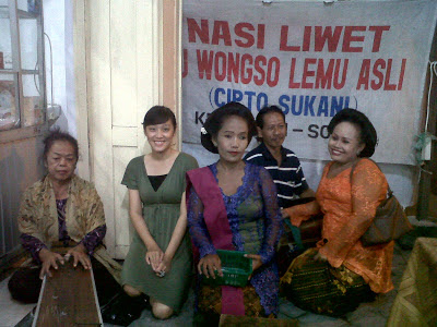 Lalu bergegaslah saya menuju tempat yang dimaksud. Sepanjang jalan yang tidak lebar itu, terdapat beberapa warung nasi liwet. Bingung milihnya. Ada mbak mbaknya yang manggil manggil agar saya dan teman temanku memilih warungnya. Duh saya paling gak tega kalau sudah harus memilih di antara banyak begini. Jadinya kuikuti saja saran pak supir yang mengantar dan memiih warung ibu Wongso Lemu Asli (Cipto Sukani).
