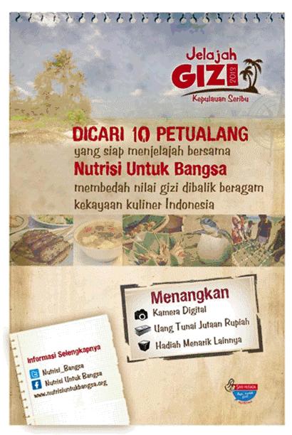 Jelajah Gizi adalah “Jalan-jalan Unik” untuk memperkenalkan keanekaragaman makanan khas daerah, sekaligus mempelajari sejarah dan budaya yang melatarbelakanginya.