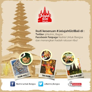 Alhamdulillah saya bisa mengikuti perjalanan Jelajah Gizi Bali bersama wartawan dan Blogger pemenang Jelajah Gizi 3 : Makanan Daerah Yang Mendunia. Kegiatan ini tidak hanya jalan-jalan biasa saja tetapi sambil mengksplorasi kuliner dan keunikan khas daerah Bali dengan kandungan gizi yang terkandung di dalamnya.