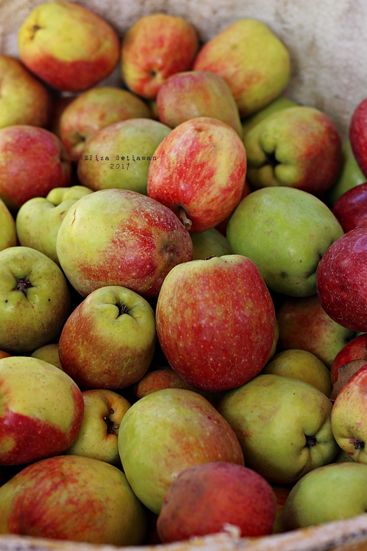 Buah lokal tidak perlu proses sepanjang itu untuk bisa kita nikmati, dan memang tidak tahan lama, karena tidak menggunakan lapisan lilin dan fungisida lainnya. Jadi tentu saja lebih aman untuk dikonsumsi. Btw, kalian tau kan kandungan gizi dari apel? Saking banyaknya manfaat apel, sampai ada quote yg berbunyi “An apple a day, keeps the doctor away”. Apa saja sih manfaat apel? Pertama, apel kaya akan antioksidan, mengurangi resiko diabetes, menyehatkan sistem pencernaan, dan masih banyak lagi.
