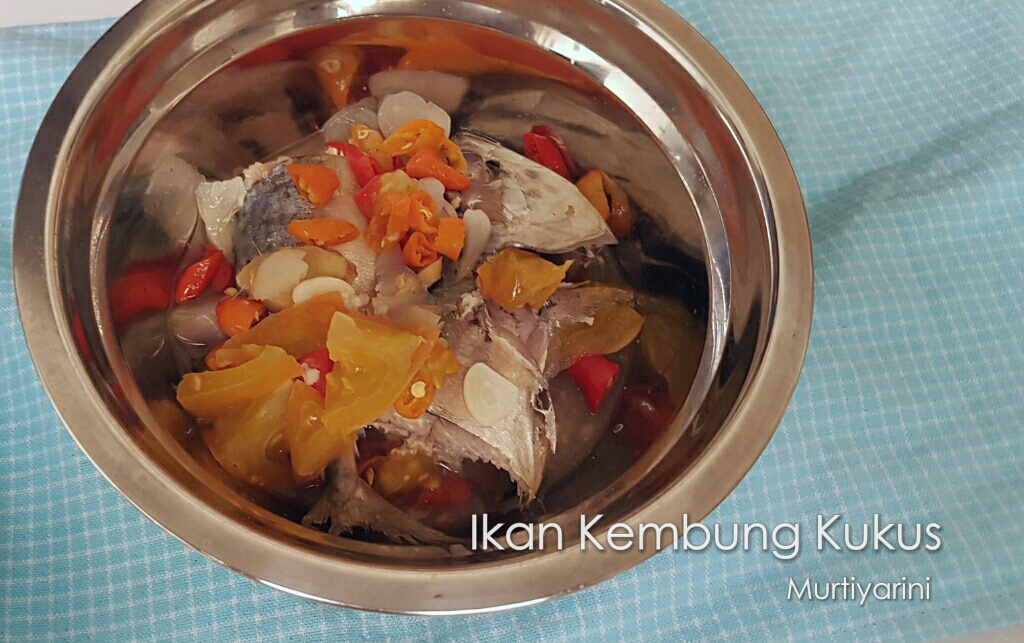 Potong Ikan kembung menjadi 2 bagian, iris semua bumbu dan masukkan semua bumbu dan bahan ke dalam wadah aluminium atau pinggan tahan panas. Kukus selama kurang lebih 15 menit.