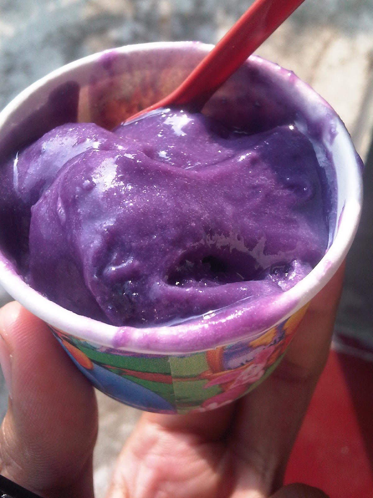 Sebagai kader kesehatan, Bidan Lies juga membantu ibu-ibu PKK untuk menciptakan inovasi pangan yang baru yakni ice cream ungu. Sekilas warnanya menggoda saya untuk mencicipinya tapi saya bertanya dalam hati apakah ada pewarna makanan atau tidak karena warnanya sungguh menggoda. Ternyata ice cream ungu ini terbuat dari ubi jalar. Ubi jalar yang mempunyai nama latin Ipomoea batatas L terdiri dari berbagai varietas. Yang dimanfaatkan oleh ibu-ibu PKK adalah ubi jalar yang berwarna ungu. Pangan lokal ubi jalar ungu ternyata bisa dikembangkan menjadi ice cream dan bakpao. Penasaran? Kali ini saya bagi cara membuat ice cream ubi jalar ala ibu-ibu PKK di desa ini.