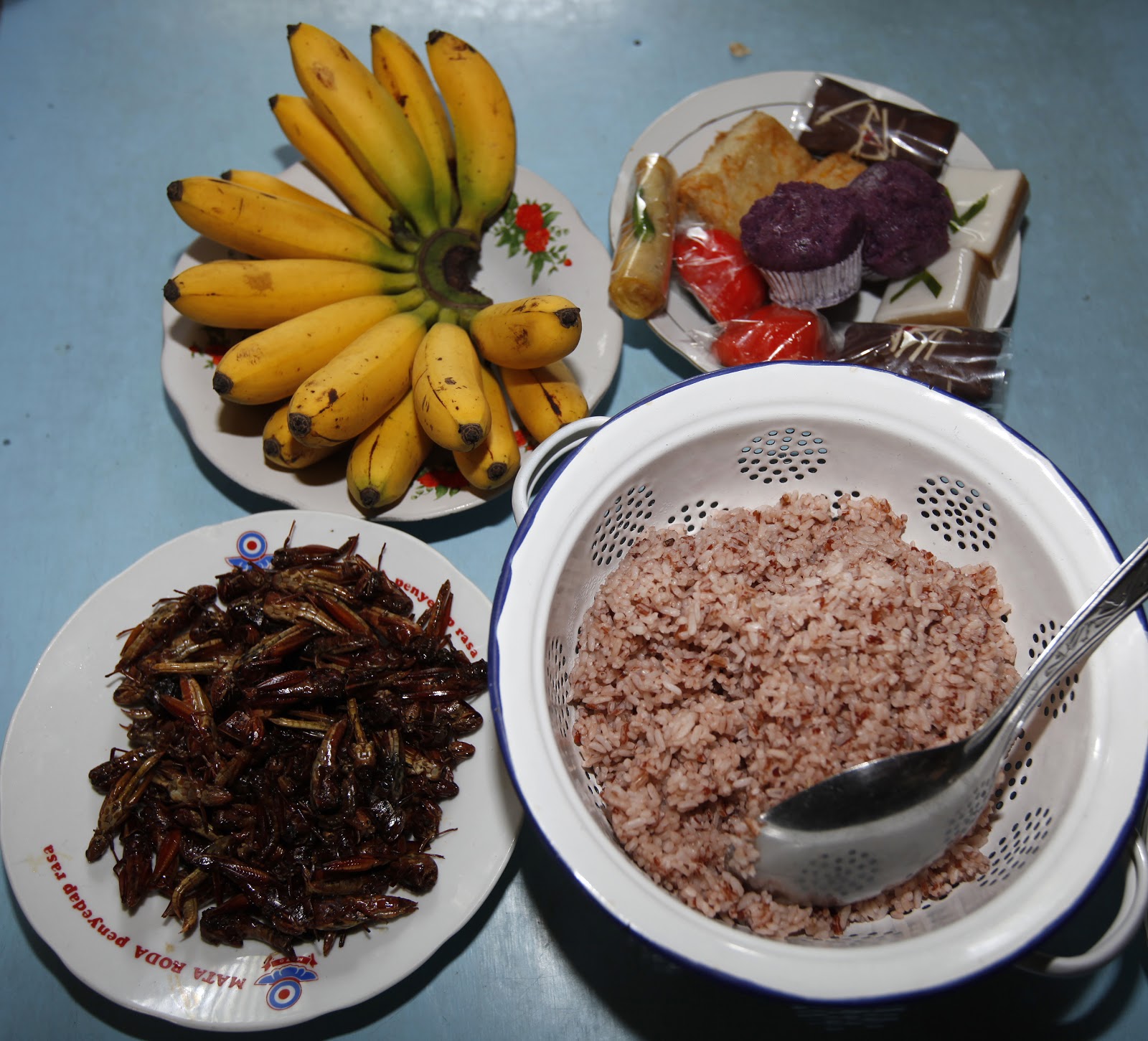 Sudah terlambat dihari pertama saya memutuskan untuk berlari bersama mobil panitia mengejar bus yang sudah melaju terlebih dahulu menuju GK. Akhirnya sampai juga di destinasi pertama dan langsung disuguhi welcome snack berupa belalang dan makan siang nasi merah dan sayur daun pepaya.